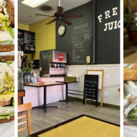 Turkey breast, avocado, Swiss cheese, tomato, lettuce, pesto sauce on spinach tortilla.